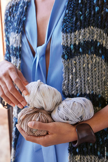 je 250 (250 - 300) g in Nacht-/Hell-/Dunkelblau/ Türkis (Fb 7) und in Grau/Beige/Grège/Camel (Fb 11)