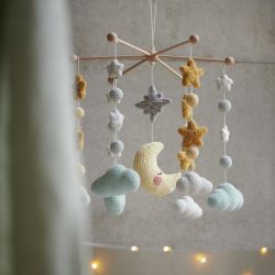 Das Ricorumi Heft „Glow In The Dark“ zeigt zuckersüße Modelle für Baby- und Kinderzimmer. Gehäkelt werden Sterne, Monde, Wolken und kleine Kugeln, die in Mobiles, Girlanden und Beißringen nach Lust und Laune kombiniert werden können. Die Ricorumi Variante „Glow In The Dark“ leuchtet im Dunkeln und wird im Zusammenspiel mit der Baumwoll-Variante und Ricorumi Nilli Nilli zu einem echten Hingucker – im Hellen und im Dunkeln.